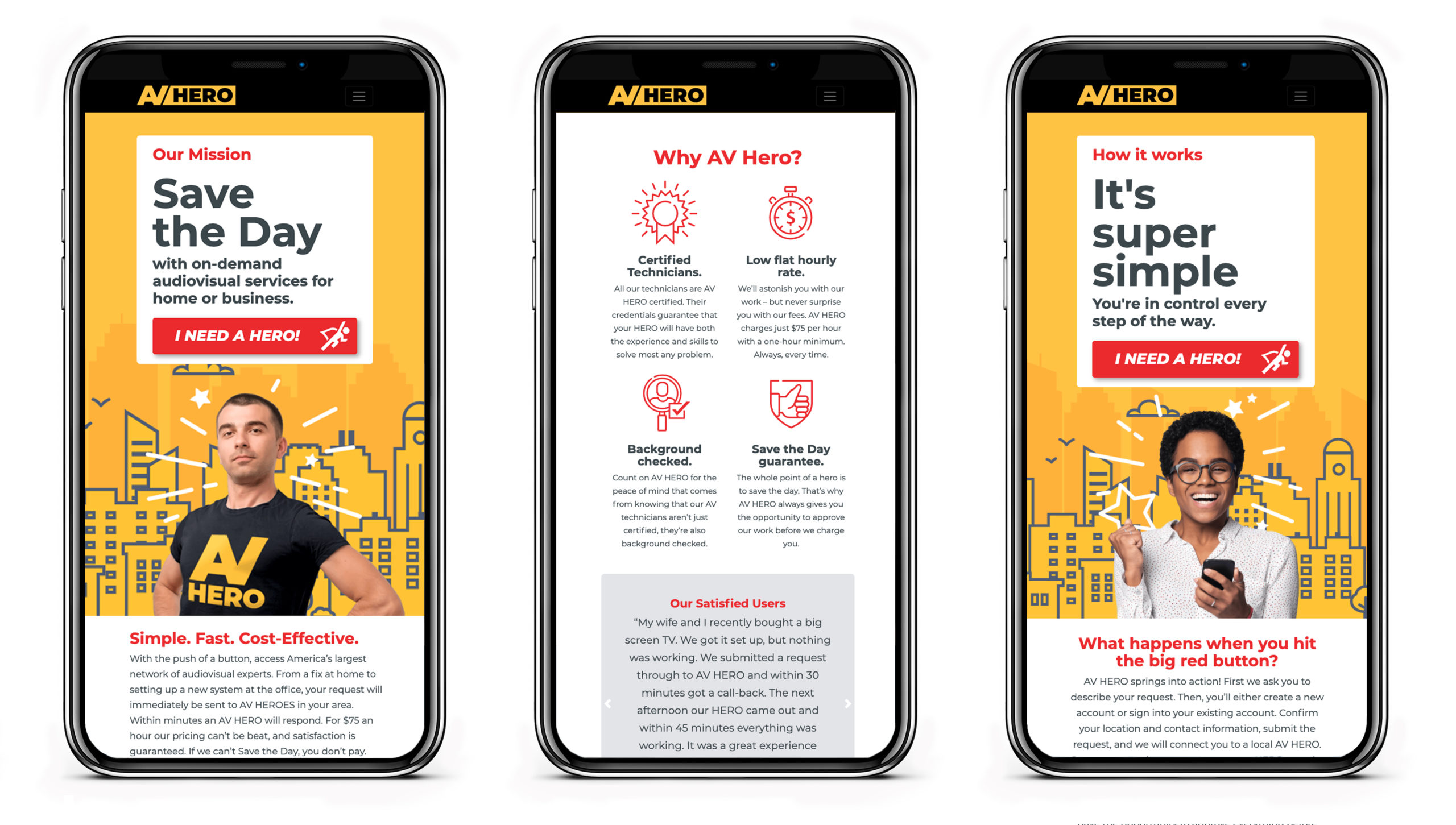Our brand, our mission, our vibe were encapsulated in the tagline: “Save the Day.” Because that’s what AV HEROES do; ask anyone who’s ever endured a video conferencing glitch at the worst possible moment.
