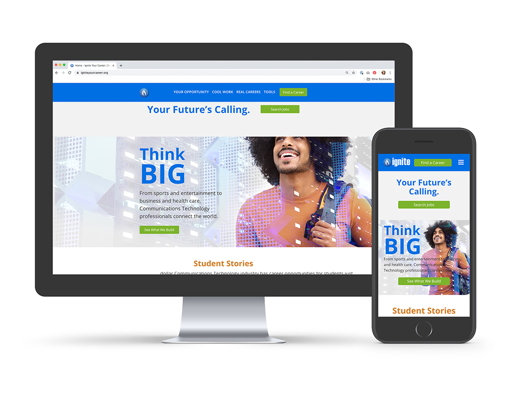 This endeavor was all about connection and activation on a grassroots level. The heart of it: a program that communicated the opportunities available in AV, matched young people with industry mentors, engaged educators to identify career candidates, provided scholarships to students, and made it easy for employers to reach prospective hires. I oversaw the fundamental brand work and web development, and led an ambitious education campaign to mobilize our industry. Today IGNITE is more vital than ever, and it will only keep growing – along with the incredible opportunities it represents.
